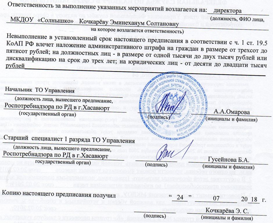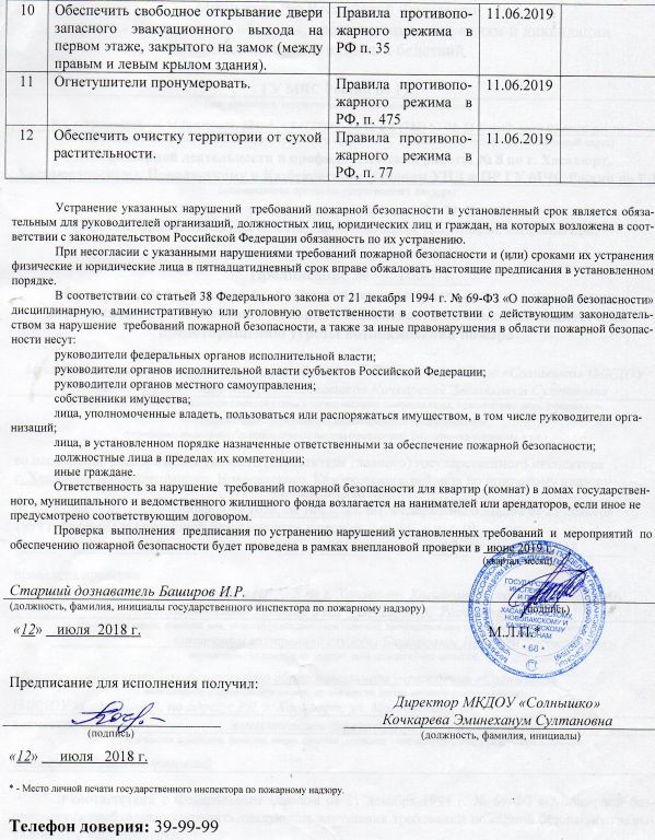 правила внутреннего трудового распорядка Документ подписан электронной подписью Серийный номер 603332450510203670830559428146817986133868575830 Заведующий Кочкарева Эминеханум Солтановна Дата подписания документа 14.07.2021 14:55:09 (скачать) (посмотреть)