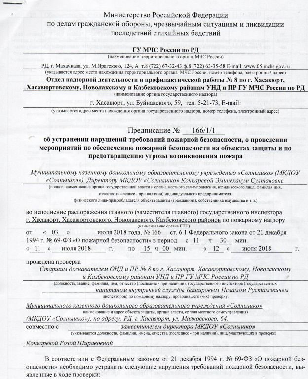 Устав МКДОУ СОЛНЫШКО Документ подписан электронной подписью Серийный номер 310227031995278721568419988831218614170173341551 Заведующий Кочкарева Эминеханум Солтановна Дата подписания документа 09.11.2022 15:41:10 (скачать) (посмотреть) (текст документа)